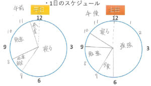 入試本番を意識して勉強スケジュールを組んで、お昼の時間も合わせていました。