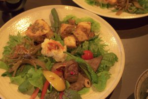 ・腸活については、これまであまり聞いたことはなかったのですが、今回会場となった「なっぱ」様のお料理には 腸などの内臓をはじめ、人間のホルモンにも影響のあるメニューが多く盛り込まれていました。小麦などを極力 抑えて、米粉や大豆を中心に、野菜とタンパク質をバランスよく摂取するのが、腸活のコツのようです。食事で 幸せホルモン(セロトニン)の分泌を促すことができるというのは、初耳でした。麻婆豆腐とか、簡単そうなの で、これからつくってみようと思います。